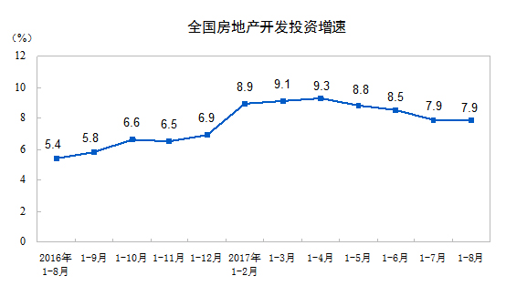1-8月份,全國(guó)房地產(chǎn)開發(fā)投資69494億元,同比名義增長(zhǎng)7.9%,增速與1-7月份持平。商品房銷售面積98539萬(wàn)平方米,同比增長(zhǎng)12.7%,增速比1-7月份回落1.3個(gè)百分點(diǎn)。